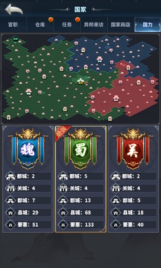 1、三国历史沉浸体验,以三国时期为背景,1:1还原379座城池的地理位置,涵盖官渡、赤壁等经典战场。
