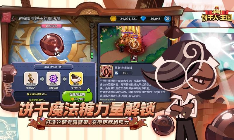一个冒险游戏,以打击邪恶的甜点怪物。每个姜饼人都有不同的技能和属性。你需要根据你的角色选择最合适的策略去战斗。还有很多精彩的剧情模式和任务等待玩家挑战,解锁更多的姜饼人和技能。画面很可爱,充满了蛋糕和甜品的元素,音乐也很欢快悦耳。