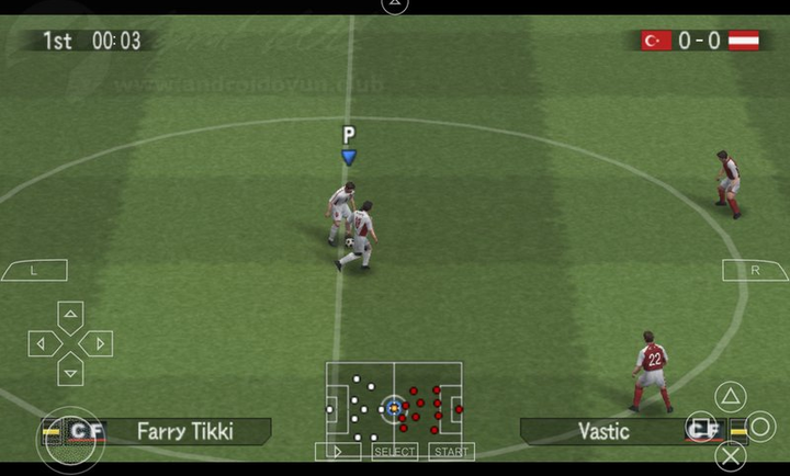 2、虚拟摇杆控制移动,虚拟按钮完成传球、射门、抢断等动作。