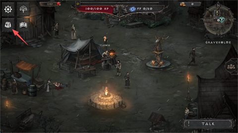 2、交谈之后,点击屏幕左上角的“背包”标识。