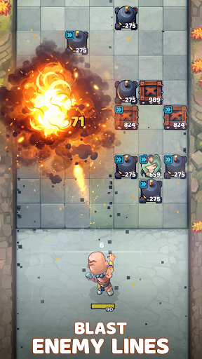 3、进入关卡后按住屏幕可以选择不同的角度发射弹球攻击敌人,弹球命中敌人会造成伤害。