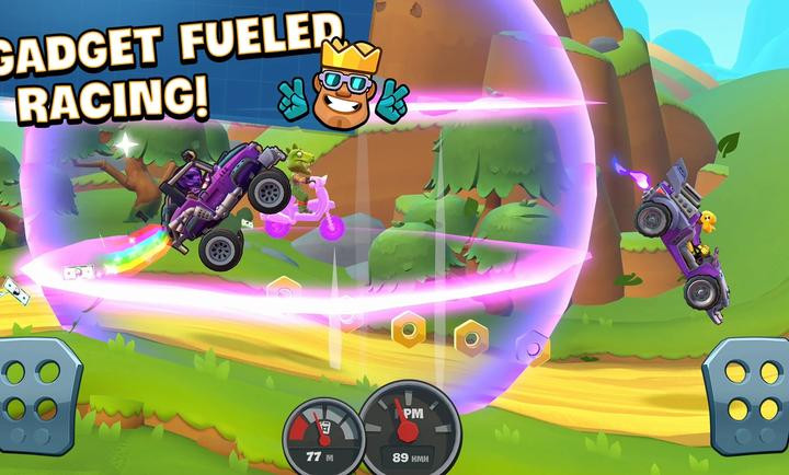 5、低门槛高上限玩法:操作仅需两个按键(油门/刹车),新手易上手;但高阶玩家可通过精准控速、空中姿态调整与道具时机把握实现技术碾压,兼具休闲与硬核属性。