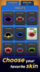 4、游戏以多人对战为主要玩法,玩家在游戏中将化身黑洞,在繁华的大都市街头吞噬各种物品,让自己变得更加庞大。每局游戏的资源有限,玩家为了将自己变成更加庞大的存在,必须抓紧时间去吞噬物品,甚至其他细小的黑洞,成为黑洞界的大佬