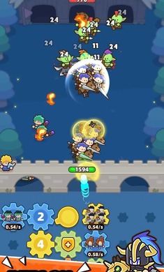 3、点击战斗后齿轮会转动来召唤小兵,小兵会自动消灭出现的怪物敌人。