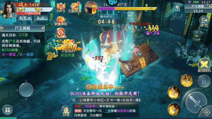 挑战各类BOSS领主时可开启自动战斗功能,通关后有概率掉落紫色品质装备,是前期提升战力最为高效的方式之一。