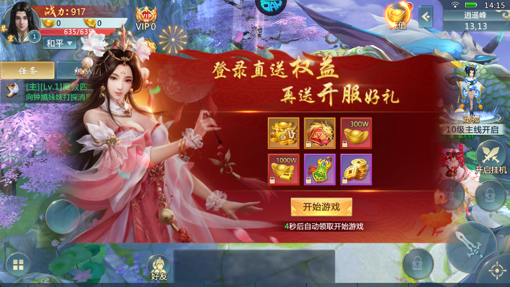 4、登录即享10阶宠物幻化礼赠,伴您开启精彩旅程。