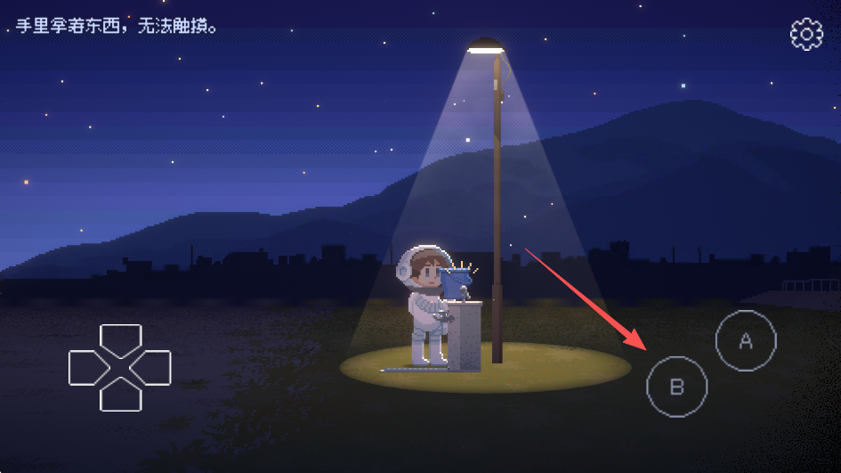 从海里上岸之后,玩家将进入第一段剧情,点击右侧A键按钮拿起水桶