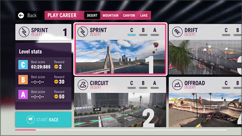 5、漂移试验和计时赛:这些模式包括额外的比赛,除了您的职业生涯外,您还可以收集汽车零件等物品,并使用完全独特的汽车选择尝试独特的环境。
