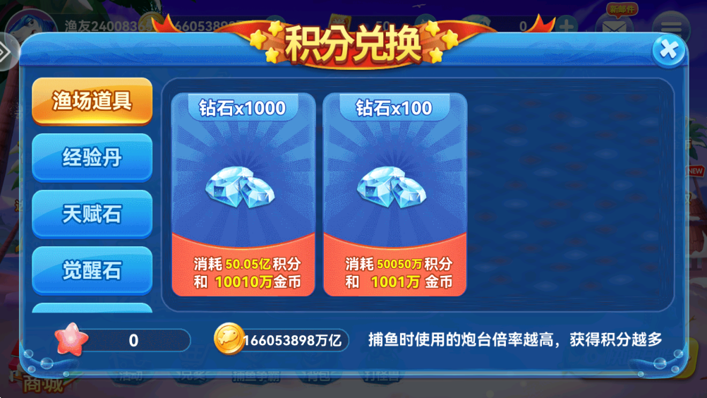 捕鱼季积分怎么兑换钻石