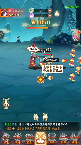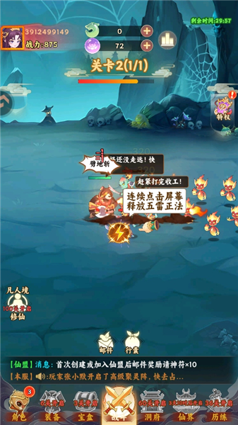 1、海量关卡层层推进,每一关都设计有专属挑战内容与特色任务难题,需合理搭配出战阵容,可轻松横扫各路妖魔怪物。
