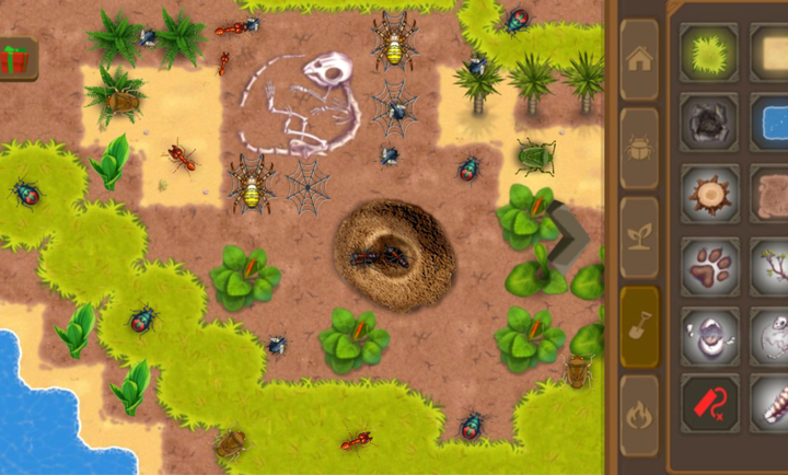 1、上帝视角的微型生态模拟,在专属沙盒中生成昆虫、蚂蚁等微型生物,种植树木、灌木,观察生态系统的进化或崩溃。