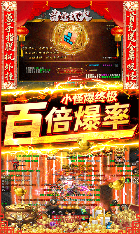 雷霆裁决异火贺岁版是一款有异火系统的传奇手游,玩家登录雷霆裁决异火贺岁版就送青莲地心火,直接帮助玩家全方位属性,还有满攻速和百倍爆率,免费掉落极品时装,小怪也能爆终极,更有独创挂机神器轻松拥有一身极品,散人玩家也只管爽。
