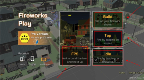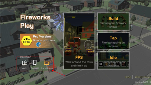 1、打开游戏该界面后,点击这里可以切换游戏的横屏与竖屏模式,以不同角度去欣赏烟花,