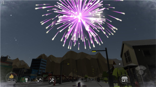 2.开启FPS第一人称模式,穿梭在小镇的街头巷尾,在邻居附近点燃烟花,体验近距离爆炸的刺激与快感。