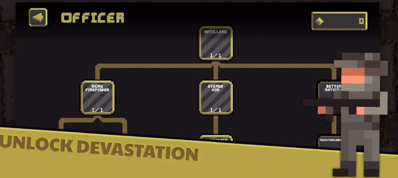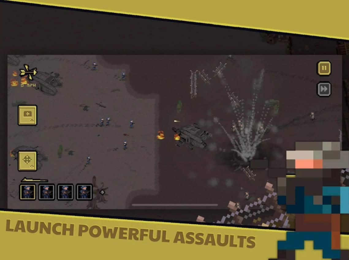 走进战壕游戏是一款像素风格战斗射击生存手机小游戏,在走进战壕游戏内的带领部队展开一场刺激的决战之旅,复古像素美术风格给玩家带来独特的视觉享受,又不失战争游戏的刺激感,玩家可以选择不同的国家和派系,每个派系都有自己独特的部队和战术特点,根据自己的战术需求定制和升级部队的装备和技能,打造个性化的作战队伍。