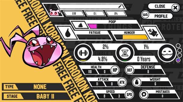 5、点击左上角的按钮可以查看数码宝贝的具体数值,通过训练可以让你的数码宝贝进化。