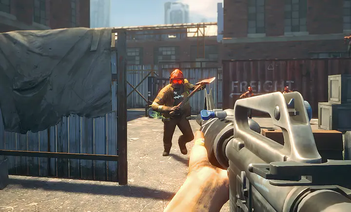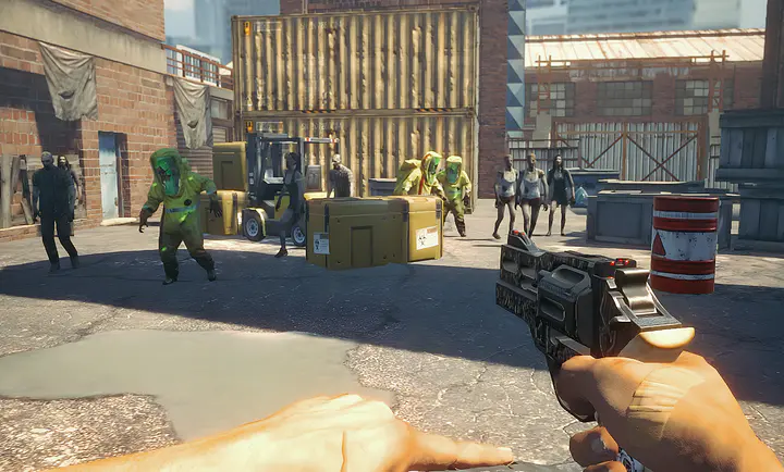 僵尸港湾手游是一款以末日丧尸为题材的第一人称射击游戏,背景设定在一个被僵尸统治的末世,玩家将扮演一名幸存者,需要使用各种武器来消灭僵尸,同时不断升级武器以应对更强大的敌人,努力在这个充满危险的世界中求生。游戏提供了突击步枪、霰弹枪、机关枪等多种武器,每种武器都有其独特的战术优势,关卡数量丰富,每个关卡都设定了不同的挑战和任务目标,需要穿越被毁的城市与建筑,面对一波波汹涌而来的僵尸潮。