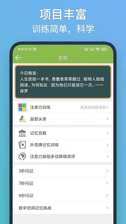 便捷灵活的扑克记忆训练,支持随时随地进行记忆能力锻炼。