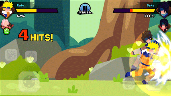 5、火柴人像素美术:采用Q版火柴人结合像素风格的角色设计,搭配卡通渲染与粒子特效,在复古视觉中呈现华丽忍术如螺旋丸、千鸟等。