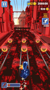 地铁跑酷熊大8.0是一款充满创意的跑酷游戏,经过魔改之后,更加刺激好玩。游戏画面采用红色风格,金币变成了愤怒表情,角色和滑板皮肤也大幅度更新,给玩家带来了耳目一新的视觉体验。简单的操作方式让所有年龄段的玩家都能快速上手,左右滑动即可轻松控制角色前进。丰富多样的关卡设计中,每个关卡都有独特的道具和障碍物,考验你的反应和决策能力。你不仅能收集金币,还可以利用商店中的道具,比如“双倍积分”和“隐身”,使跑酷之旅更为顺畅。
