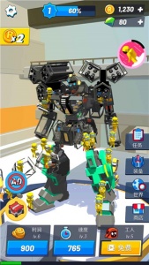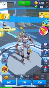 2、战斗获胜可以获得金币,金币用于升级机器人以及雇佣更多的工人帮你工作,从而提升生产效率;
