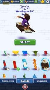 玩家从游戏收集大量的金币。这些金币可以在游戏店铺购买技能和工具。工具主要有加速度、磁铁和滑板。