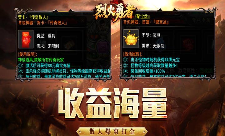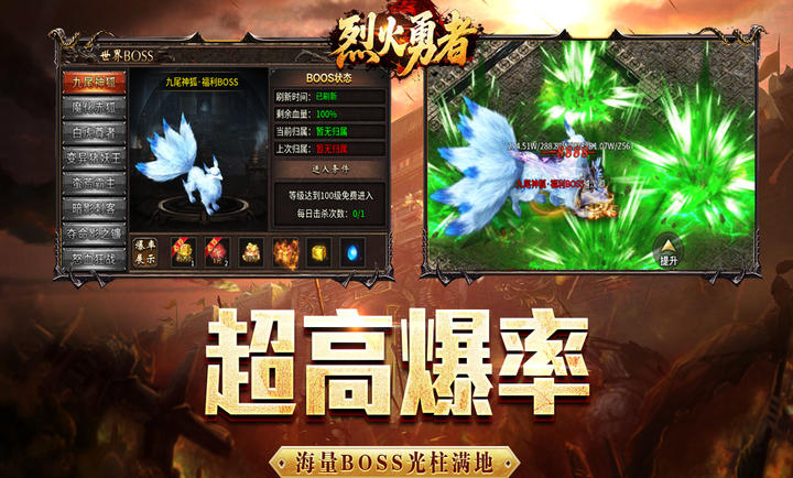 烈火勇者手游是一款以高爆率和自由探索为核心卖点的传奇题材角色扮演游戏,以传奇为背景,完美复刻了战法道三职业的平衡体系与攻沙城战的热血氛围,同时针对移动端进行了全面优化,玩家将化身勇士,在玛法大陆上开启新征程,再现原汁原味的传奇体验。所有装备道具均可通过击败怪物直接掉落,甚至前期地图也有机会获得顶级装备。打到的非绑定装备和材料均可在游戏内自由交易,玩家之间可以实现资源互通。