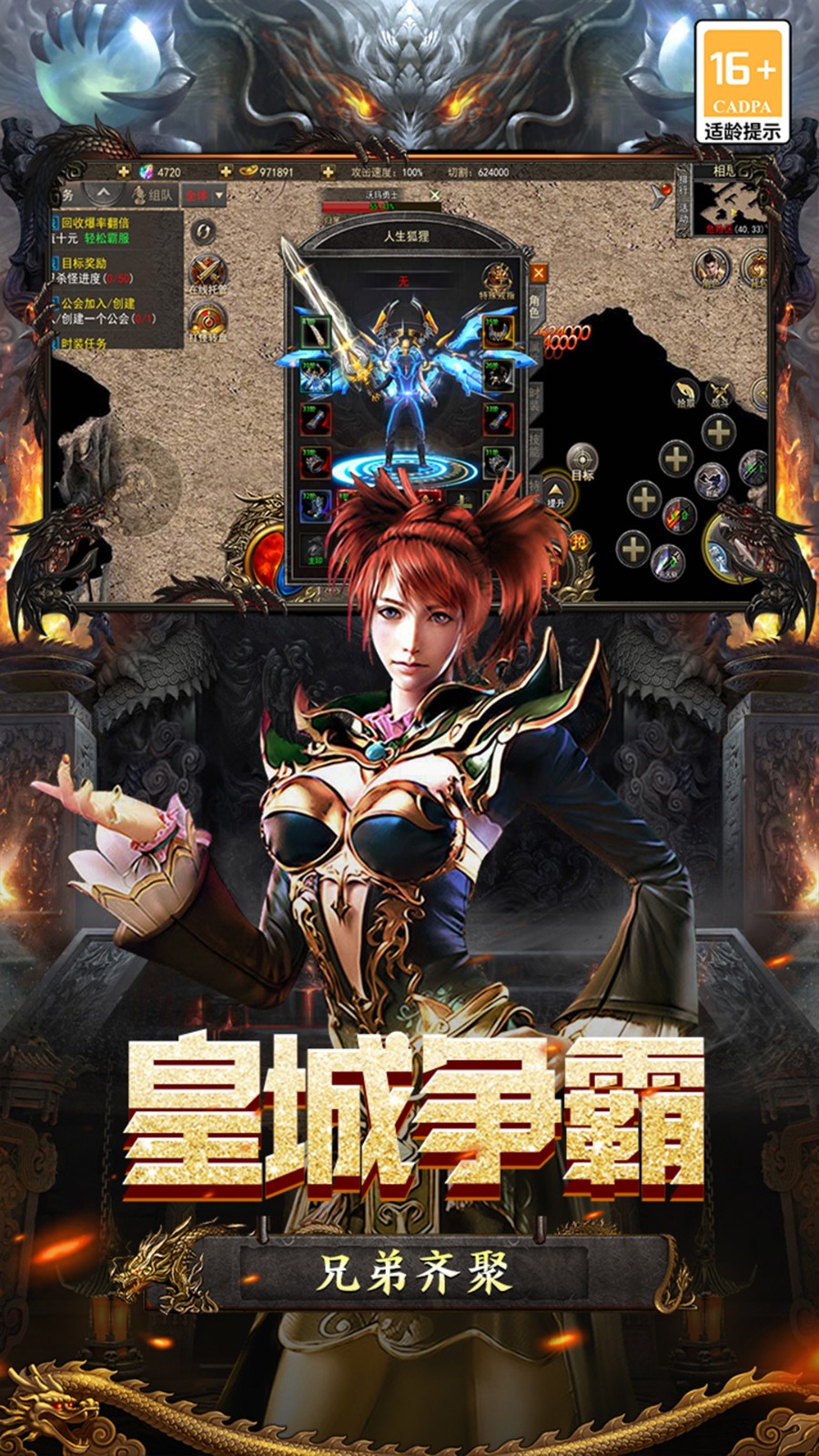 4.宏伟壮观的全民攻沙、沙城野战、野外原始PK、一键回收、烈焰套装、破晓唤龙、酷炫特效等全新升级经典玩法