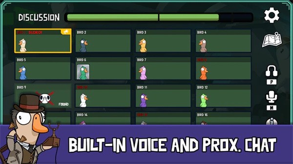 鹅鸭杀手游是一款和火遍全网的鹅鸭杀同款玩法的团队游戏。在鹅鸭杀手游中,玩家将和自己的伙伴一起完成任务,并且防止其他不怀好意的鸟类来捣乱!快来感受多人游戏带来的快乐吧,说不定还能结交好友!