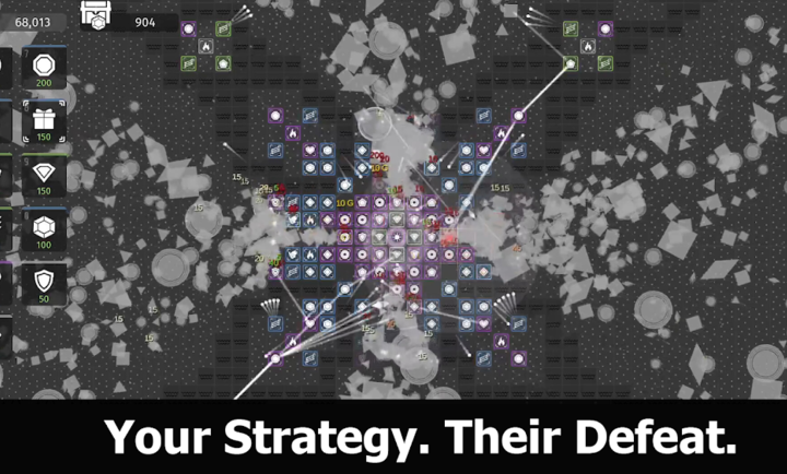 1、极简画风与高效性能,采用像素风格与极简线条设计,摒弃复杂场景渲染,以平面图标和多边形元素构成地形与防御塔。