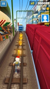 1、开始游戏后,你将操纵角色在地铁车站奔跑,你需要通过滑动屏幕来控制他向左或向右移动;