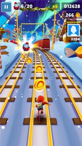 地铁跑酷圣诞节版是为了庆祝圣诞节而特别推出的限时版本。游戏中,玩家将置身于梦幻的冰雪世界,四周洋溢着浓厚的节日氛围,火车上挂满了五彩缤纷的圣诞装饰,甚至主角督察也换上了圣诞老人的服装。他的小狗则打扮成了可爱的驯鹿,为游戏增添了不少趣味。全新角色马利克现身,以企鹅造型和雪人背饰为玩家带来惊喜。新增的三位特殊跑者和多款滑板让跑酷体验更具乐趣。跟随节日旋律,冲刺在白雪覆盖的地铁轨道上,在这个欢乐的季节里,与朋友们一起享受无尽的刺激与挑战吧!