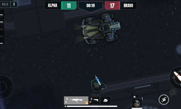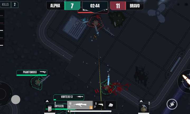 3、虚拟按键布局合理,移动、射击、闪避等基础操作易于掌握,1v1模式适合熟悉游戏节奏。