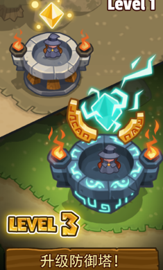 3、深度养成与资源管理,每座塔可提升三个等级,解锁进阶分支(如箭塔可转型为毒箭塔或连弩塔),延伸防御塔玩法。