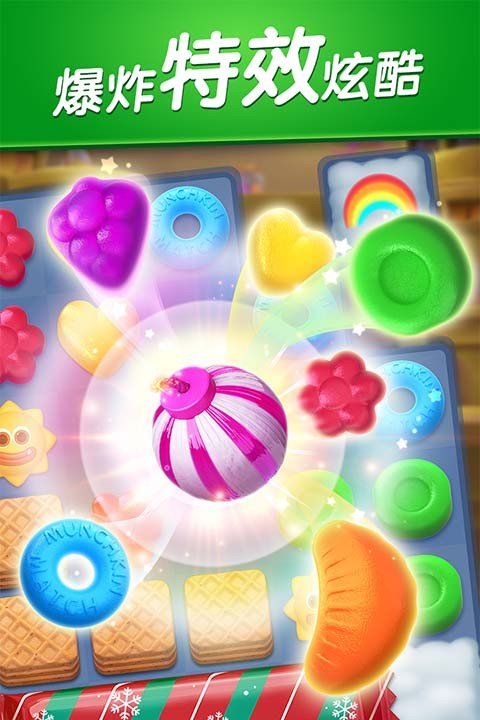 通过消除糖果召唤强大的糖果精灵。它们不仅能协助清除关卡障碍,还可化身为特效精灵,在屏幕上展开华丽助战。