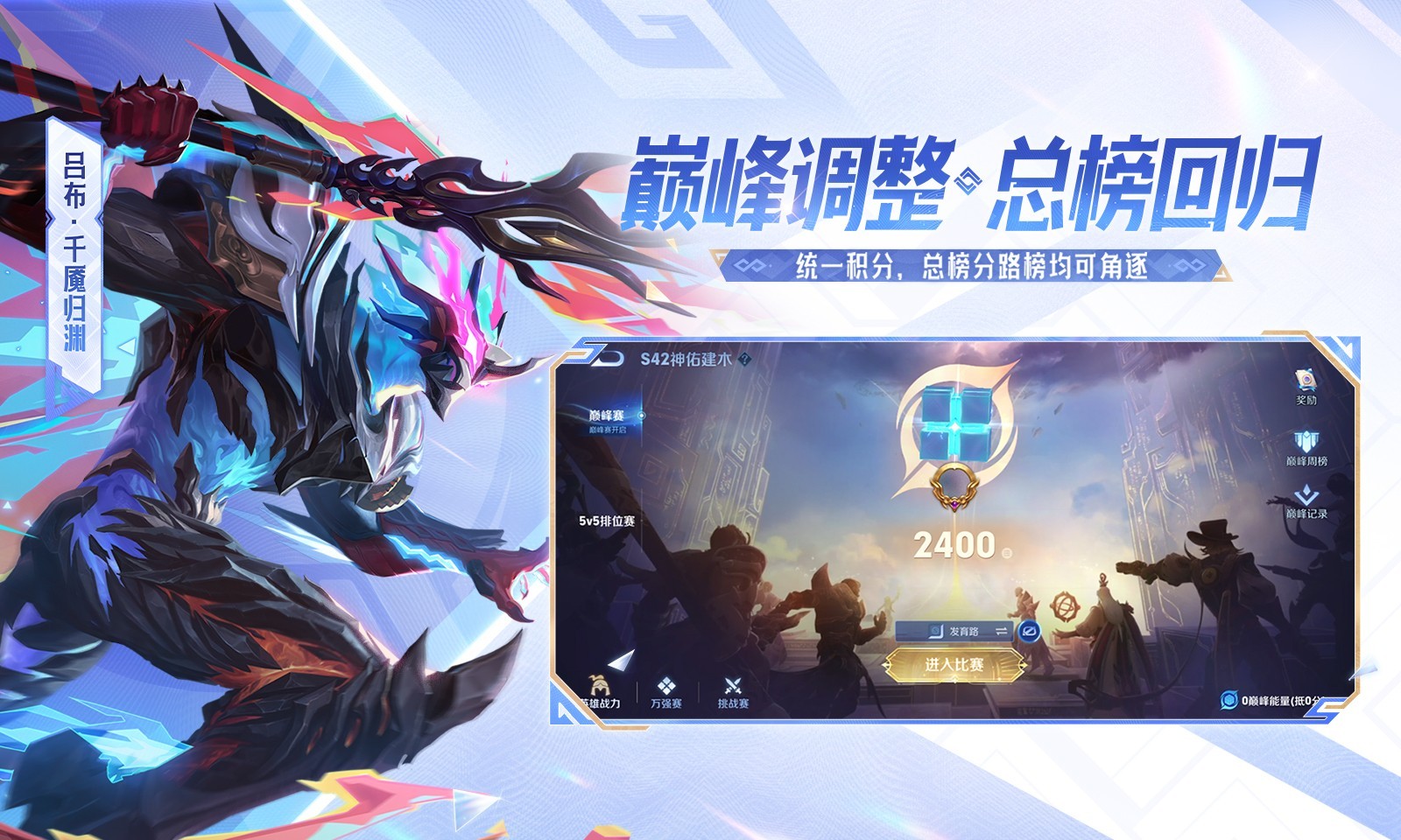 5.巅峰赛系统调整:总榜回归,统一巅峰积分,同时保留巅峰分榜。