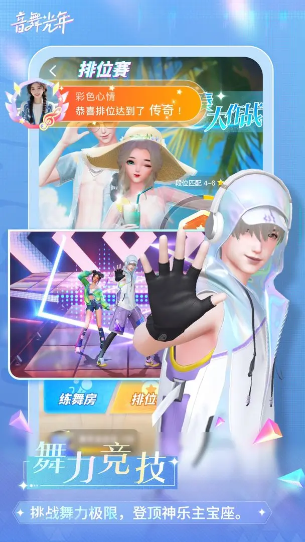 3、点击音舞排位赛可以和别的玩家进行斗舞,点击排位赛按钮就可以进行匹配。