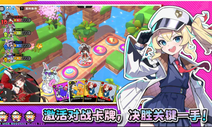吉星派对手游是一款最多支持4人联机的二次元美少女风格派对游戏,以二次元美少女为主题,融合了大富翁棋盘探索与二次元战斗元素,支持最多4人同时游玩,游戏地图包含多种功能地块,玩家掷骰子决定前进格数,触发随机事件。这些事件可能带来机遇,也可能带来挑战,相遇时可触发一对一战斗,使用卡牌提升攻击点数,获胜后夺取对手金币。地图中还会出现中立生物和陷阱。