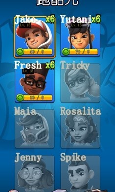 6、跑酷分数越高就能获得更多的升级奖励,每个·角色都有着技能系统。比如杰克一阶段技能位获得一个磁铁,二阶段捨取金币就能为滑板充能,三阶段开始游戏就可以获得一块滑板。