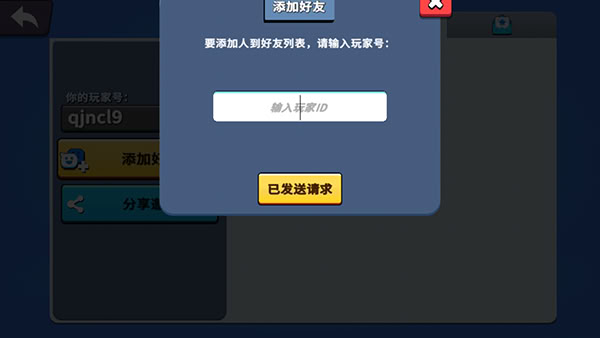 2、在此界面可查看你的专属玩家编号,点击“添加好友”按钮;