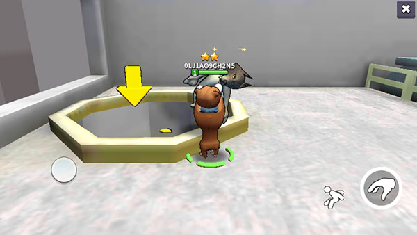 4、左侧虚拟摇杆控制角色移动,右侧按钮负责跳跃、抓取、投掷等动作操作;