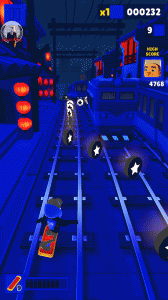地铁跑酷中有磁铁、飞行背包、双倍得分、运动鞋、滑板等道具,其中滑板需要双击屏幕激活,可在商店中购买不同的样式,单次增加金币倍数及路程加速为单次使用,宝箱可在游戏中获得或在商店购买,其余道具则需在游戏过程中获得,并可在游戏内的商店中升级以延长有效时间。